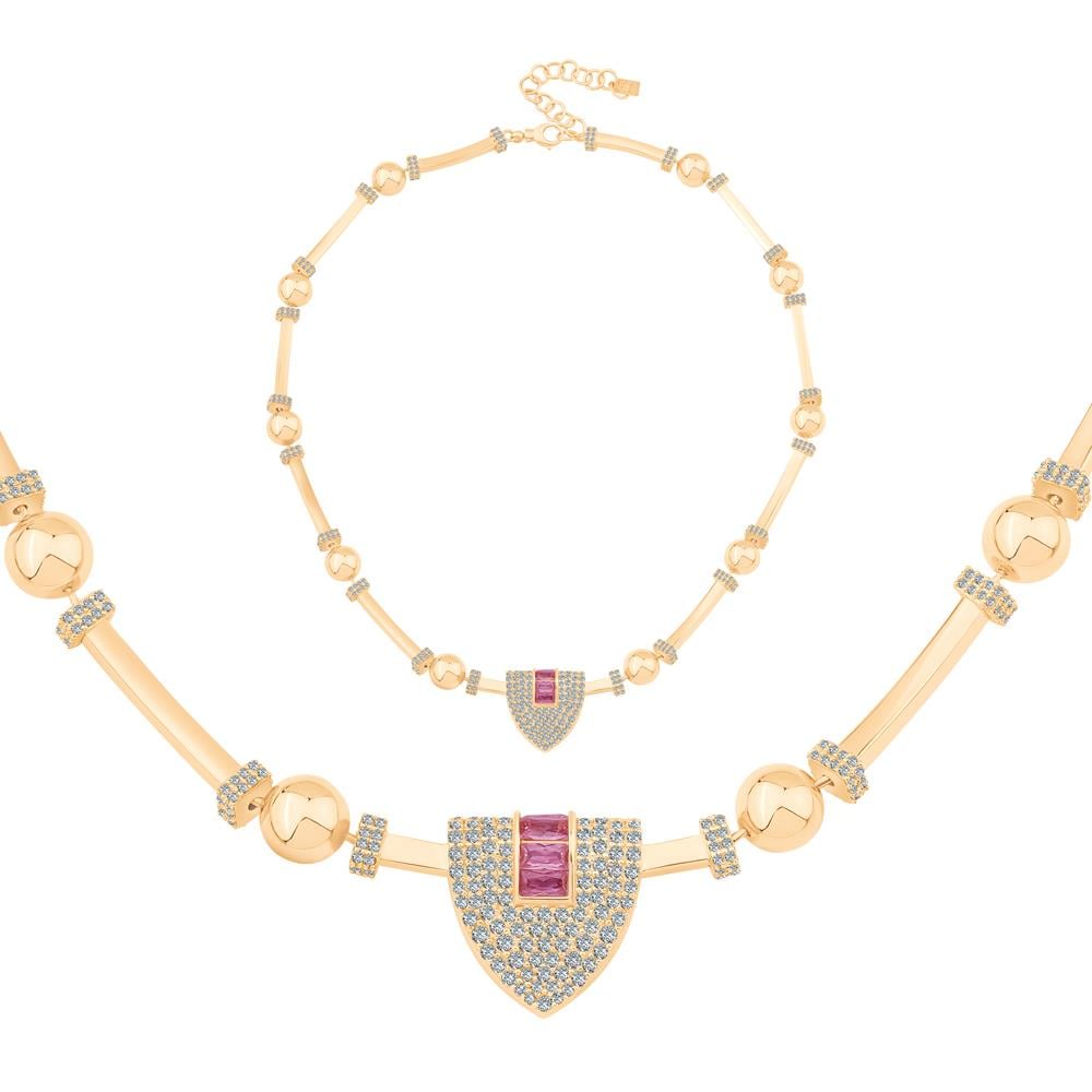 Pembe Baget Taşlı Silindir Kolye